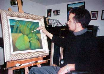 Born in Port-au-Prince, Haiti in 1961, grandson of a former president with the same namesake. Elie started showing interest at drawing at the tender age of eight. At eleven, the precocious artist became the apprentice of Raoul Viard, a well-known Haitian artist. Soon after, Viard realized the natural talent and artistic abilities of his young pupil, guiding him during the first few attempts at mastering painting. Sponsored by the German-Haitian Institute, Elie Lescot had his first exhibit at the age of fourteen. Later, Elie joined the academy of fine art in Port-au-Prince were he befriended famous Haitian artists such as Rose-Marie Des Ruisseaux, Raoul Dupoux And Jean Rene Jerome. Lescot proclaims, however, that the women in his paintings are either angels, or a divine spirit from Ethiopia, or an Egyptian goddess whose beauty and grace are worthy of admiration. Lately, inspired by Ted Martelly a long time friend and supporter of the artist, Lescot has embarked on a new challenge, painting still life mainly tropical fruits like coconuts, in a hyper-realistic genre, by adding his signature glowing detail that elevates his executions to iconographic dimension. |