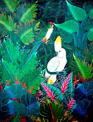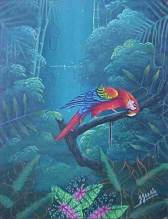| Born in Jacmel on March 20, 1954, Jacques Geslin took an early interest to drawing that led him to painting. Masters such as Jerome, Emilcar Simil and Raoul Dupoux taught him the techniques of their art for over 5 years. He is famous for his peaceful jungles where parrots, horses and goats coexist in luxuriant vegetation. He lives in por-Au-Prince and still paints. Collectors as well as galleries know him all over the world. |
