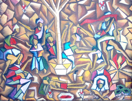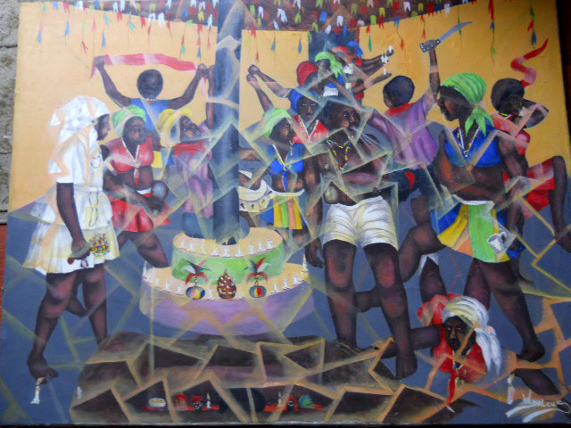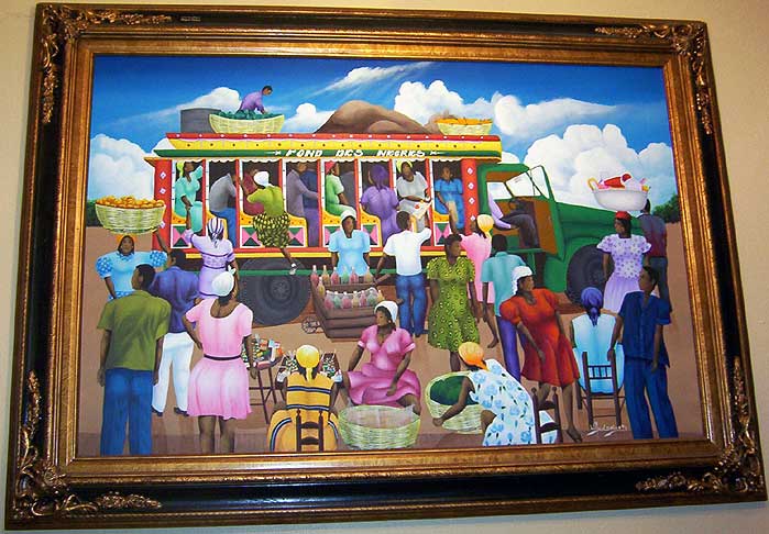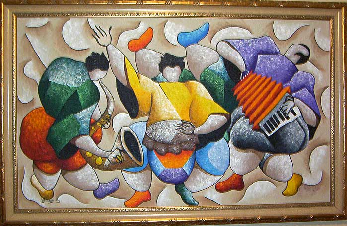 His inspiration usually comes from his dreams. No matter the source of his inspiration, Daleus will exquisitely put in on canvas. He creates a fusion of native , primitive, impressionism, surrealism, abstract, realism and classic. In 1988 Daleus was given the honor of restoring the old paintings of the master of the presigious school of Naives, Philome Obin. His paintings have hung in many places such as the Topen Musem in Amsterdam, The Brooklyn Museum in New York, The College St. Pierre, the Mupana Museum in Port-Au-Prence, the Cornell Museum in Delray Beach, Florida. He has exhibited in France, Germany, Spain, The Ivory Coast, Venezuela, Canada, The Ivory Coast, The Dominican Republic, The Bahamas... |